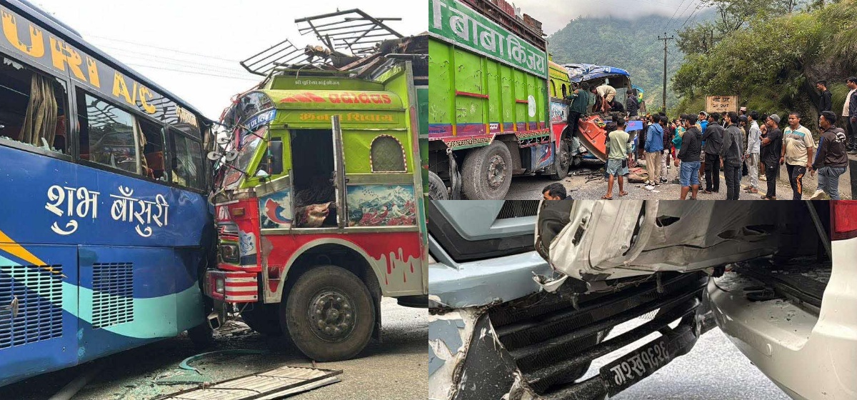 चितवन– नारायणगढ–मुग्लिन सडक खण्डको गाइघाटमा सातवटा गाडीहरु एकआपसमा ठोकिएर दुर्घटना भएको छ । एउटा ट्रले बसलाई ठक्कर दिएपछि अन्य गाडीहरु पनि तिनै ट्रक र बसमा ठोक्किएका थिए । दुर्घटना हुँदा बसमा चेपिएका चालकको उद्धार गरी उपचारका लागि चितवन पठाइएको इलाका प्रहरी कार्यालय मुग्लिनले जनाएको छ ।