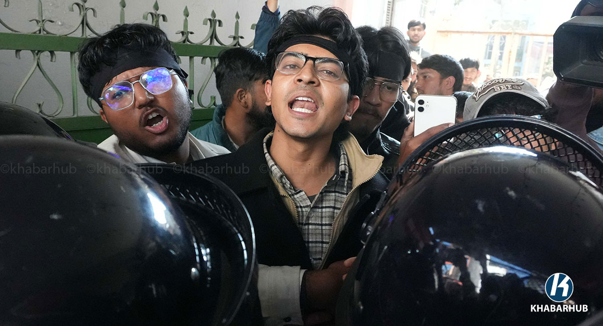 काठमाडौं– प्रधानमन्त्री सुशीला कार्कीलाई विभिन्न मागसहित ज्ञापनपत्र बुझाउन पुगेका मिराज ढुंगाना नेतृत्वको समूहलाई प्रहरीले सिंहदरबार प्रवेशमा रोक लगाएको छ । प्रधानमन्त्री कार्यालयको अनुमतिबिना सिंहदरबार प्रवेश गर्न लागेका मिराजसहितका युवाहरूलाई प्रहरीले सिंहदरबारको दक्षिण गेटमा रोकेको हो । आफूहरू जसरी पनि सिंहदरबार छिर्न पाउनुपर्ने भन्दै युवाहरूले प्रदर्शन गर्न खोजेपछि प्रहरीले लखेटेर हनुमानस्थान पुल कटाएको थियो । त्यसपछि […]