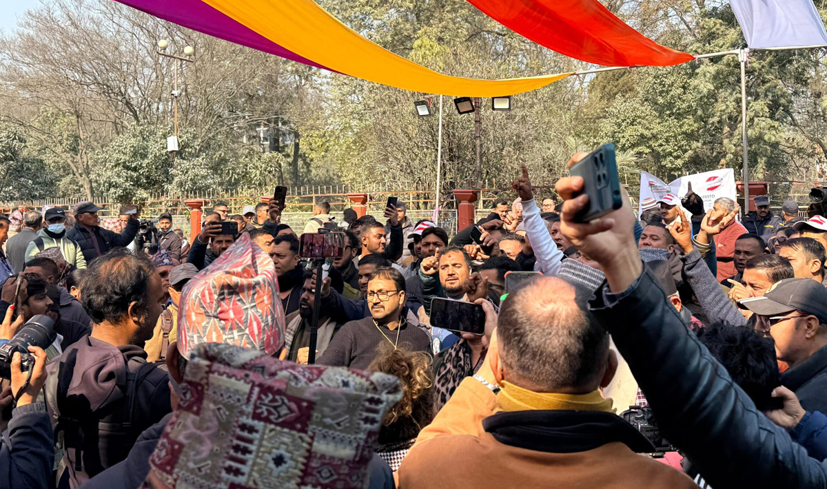 काठमाडौं– नेपाली कांग्रेसको विशेष महाधिवेशनस्थल भृकुटीमण्डमा प्रतिनिधिहरूले नाराबाजी थालेका छन् । विशेष महाधिवेशन पक्षधर र संस्थापनबीचको वार्ता विफल भएसँगै महाधिवेशन प्रतिनिधिहरूले तत्काल निर्वाचन कार्यक्रम ल्याउन माग गर्दै नाराबाजी गरेका हुन् । उनीहरूले आफूहरूलाई अलमल्याउन खोजिएको भन्दै निर्वाचनको माग गरेका छन् । पुसको २७ र २८ दुई दिनका लागि आयोजित विशेष महाधिवेशन लम्बिएको छ । मंगलबार […]