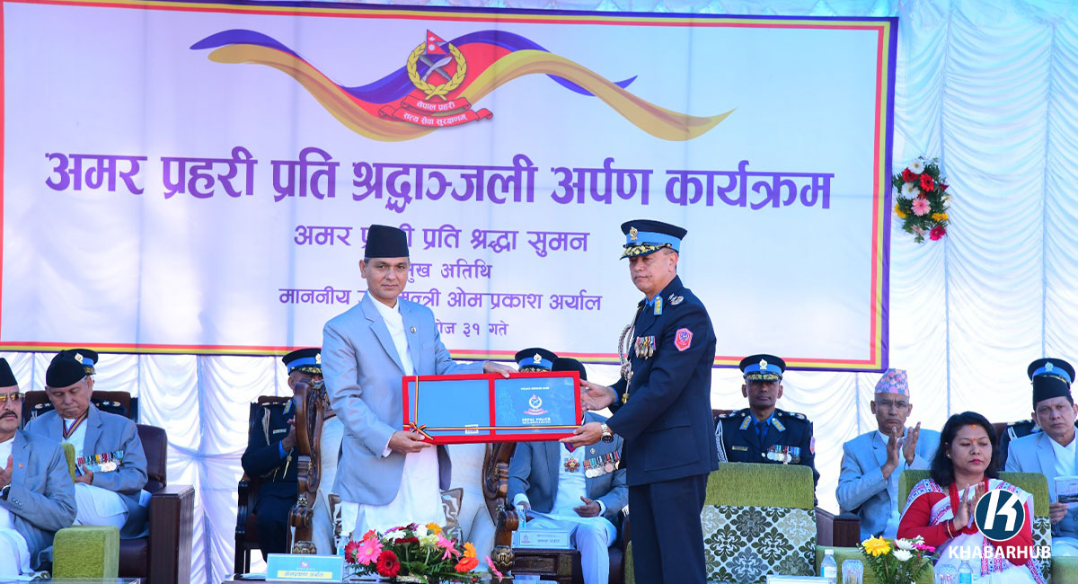 काठमाडौं– गृहमन्त्री ओमप्रकाश अर्यालले नेपाल प्रहरीलाई समयानुकूल परिष्कृत गर्दै लैजानुपर्ने बताएका छन् । शुक्रबार आयोजित ७०औँ प्रहरी दिवस एवम् अमर प्रहरीप्रति श्रद्धाञ्जली कार्यक्रममा उनले प्रविधिको बढ्दो प्रभावसँगै अपराध अनुसन्धानमा समेत चुनौती थपिँदै गएकाले प्रहरीलाई समयानुकूल परिष्कृत गर्दै लैजानुपर्ने बताएका हुन् । गृहमन्त्री अर्यालले नेपाल प्रहरीलाई पर्याप्त स्रोतसाधन उपलब्ध गराई मुलुकभित्रको आन्तरिक सुरक्षालाई थप मजबुत बनाउन गृह […]
