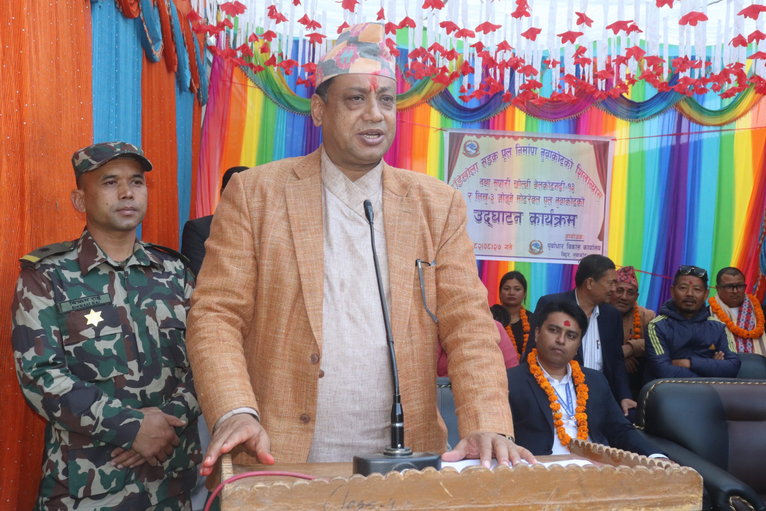 नुवाकोट – बागमती प्रदेशका मुख्यमन्त्री ईन्द्रबहादुर बानियाँले देश निर्माणको अभियानअन्तर्गत गाउँबस्तीको विकास निर्माणमा सरकार सक्रिय रहेको बताएका छन् । नुवाकोटको बेलकोटगढी–१३ स्थित ढाडेफेदीमा आज पक्की पुलको शिलान्यासपछि आयोजित कार्यक्रममा उनले ठूला योजना कार्यान्वयनसहित जनचाहनाअनुसार प्रदेश सरकारले काम गरिरहेको बताएका हुन् । मुख्यमन्त्री बानियाँले प्रदेश सरकारले स्थानीय सरकारसँग सहकार्य गर्दै जनताको चाहनाअनुरुप पूर्वाधार निर्माण, शिक्षा र […]