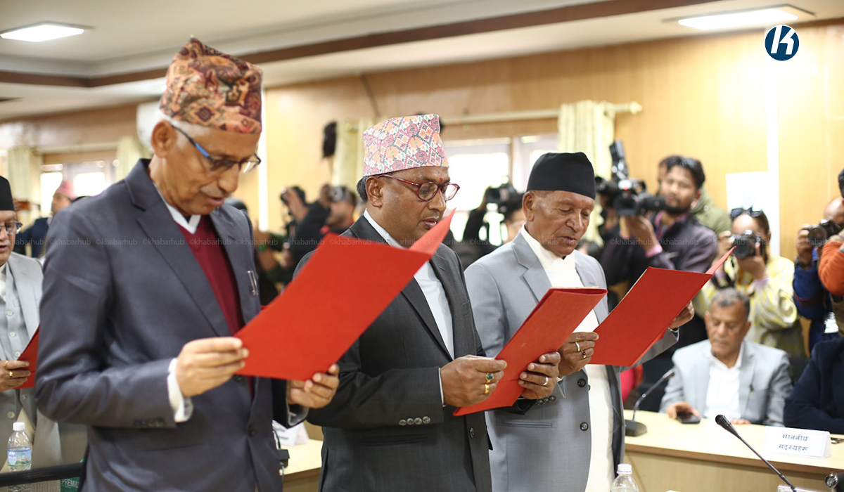 काठमाडौं– संघीय संसद अन्तर्गत राष्ट्रियसभाका नवनिर्वाचित सदस्यलाई पद तथा गोपनीयताको शपथ गराइएको छ । सोमबार सिंहदरबारमा आयोजित एक कार्यक्रमकाबीच राष्ट्रियसभाका अध्यक्ष नारायणप्रसाद दाहालले नेपालको संविधानको धारा ८६ को उपधारा २ बमोजिम राष्ट्रियसभाका नवनिर्वाचित सदस्यलाई पद तथा गोपनीयताको शपथ गराएका हुन् । शपथपछि अध्यक्ष दाहालले नवनिर्वाचित सदस्यलाई संसद्को लोगो प्रदान गर्दै सफल कार्यकालको शुभकामना दिएका थिए । गत […]