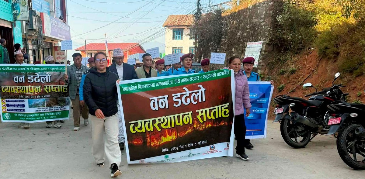 टक्सार– सुक्खायाममा वन क्षेत्रमा लाग्ने डढेलो नियन्त्रणका लागि भोजपुरमा सचेतनामूलक कार्यक्रम सुरु गरिएको छ । चैत १ गतेदेखि जिल्लामा ‘वन डढेलो नियन्त्रणमा प्रभावकारिताः तीनै तहका सरकार र समुदायको सहभागिता’ भन्ने नाराका साथ वन डढेलो व्यवस्थापनसम्बन्धी सप्ताहव्यापी कार्यक्रम सुरु गरिएको हो । सोही क्रममा आज बिहान जिल्ला सदरमुकाममा सचेतनामूलक नारासहित प्रभातफेरीसमेत गरिएको छ । डिभिजन वन […]