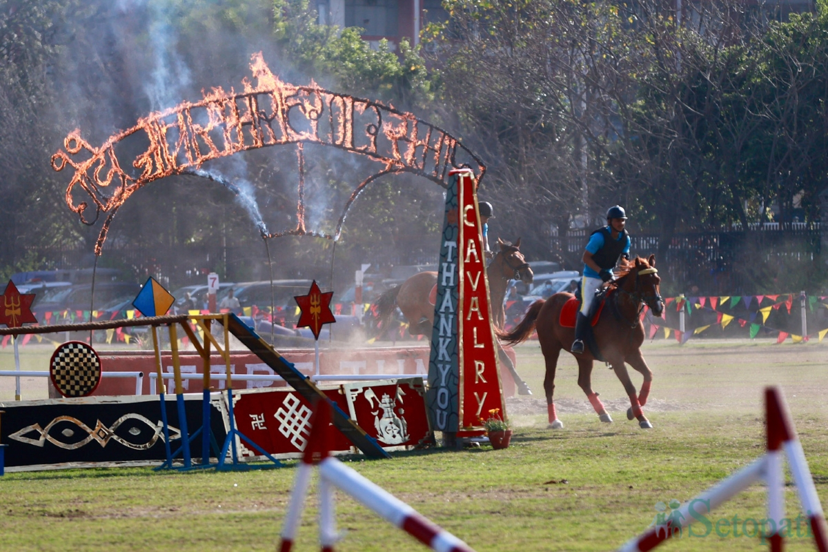 नेपाली सेनाले घोडेजात्राका अवसरमा सैनिक मञ्च टुँडिखेलमा विशेष कार्यक्रमको आयोजना गरेको छ । राष्ट्रपति रामचन्द्र पौडेल प्रथम महिला सविता पौडेलसहित समारोहमा सहभागी भएका थिए । सो अवसरमा नेपाली सेनाले उनको सम्मानमा सलामी अर्पण गरेको थियो । समारोहमा राष्ट्रपति पौडेलले नेपाली सेनाद्वारा प्रदर्शन गरिएको अश्वकलाको अवलोकन गरे । सो अवसरमा घोडा दौड, घोडा जम्पलगायत विभिन्न रोचक […]