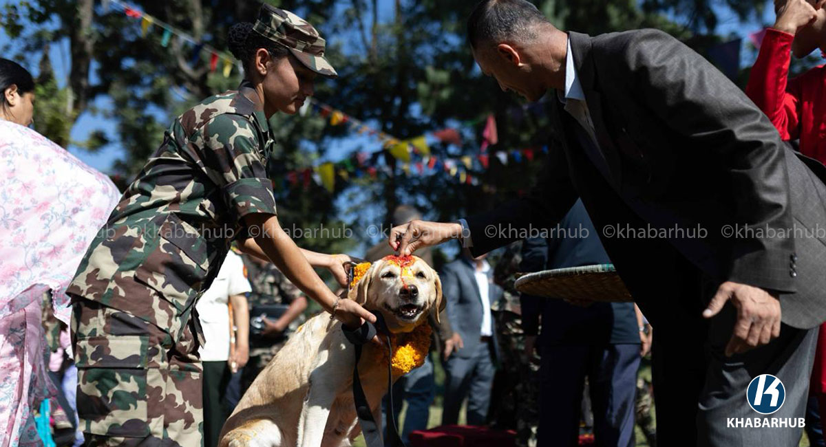 काठमाडौं– भक्तपुरको सानो ठिमीस्थित भैरव बाहन गुल्ममा सोमबार कुकुर तिहार मनाइएको छ । त्यस क्रममा सैनिक कुकुरहरूको पूजा तथा डग कला प्रदर्शन गरिएको थियो। तस्बिरहरू : नेपाल फोटो लाइब्रेरी