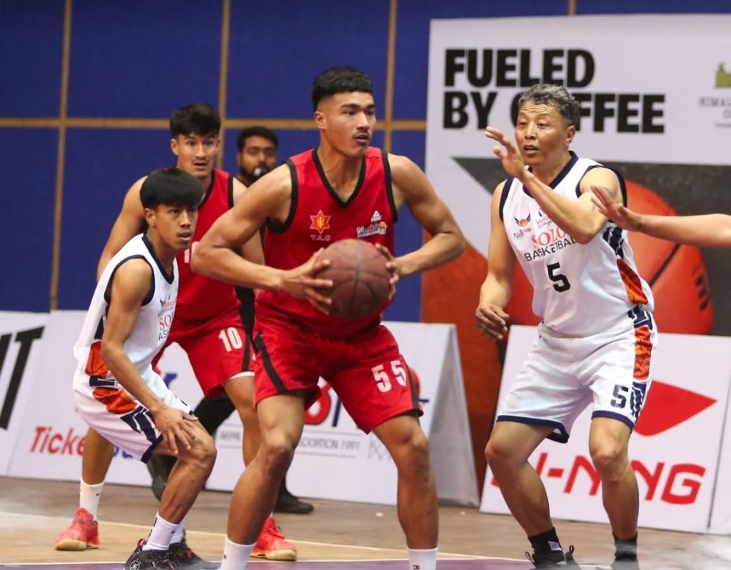 त्रिपुरेश्वरस्थित दशरथ रंगशालमा बुधबार राती सम्पन्न खेलमा आर्मीले सोलो बास्केटबल …