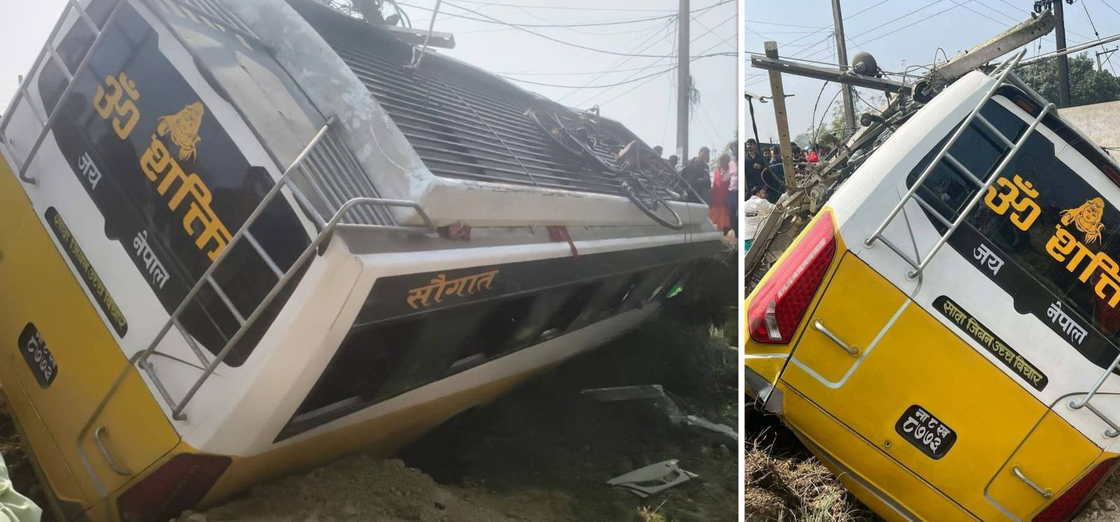 चन्द्रनिगाहपुरबाट करिब ४० जना यात्रु बोकेर रौतहट सदरमुकाम गौरतर्फ तीब्र गतिमा आउँदै गरेको बस विद्युतको ट्रान्सर्फमर बाधेको पोलमा ठोक्किएर दुर्घटना भएको प्रहरीले जनाएको छ ।