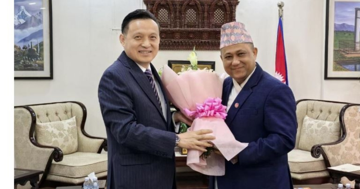 काठमाडाैं । परराष्ट्रमन्त्री शिशिर खनाल र नेपालका लागि चिनियाँ राजदूत चाङ माओमिङबीच शिष्टाचार भेटवार्ता भएको छ। नेपालस्थित चिनियाँ राजदूतावासले मन्त्री खनाल र राजदूतबीच मंगलबार राति परराष्ट्र मन्त्रालयमा भेटवार्ता भएको जनाएकाे हाे।साेही भेटका क्रममा नेपाल र चीनबीचको द्विपक्षीय सम्बन्ध, आपसी हित र व्यावहारिक सहयोगका विषयमा फलदायी छलफल भएको दूतावासले जानकारी गराएकाे छ। दुवै पक्षबीच आपसी सहयोगलाई […]
