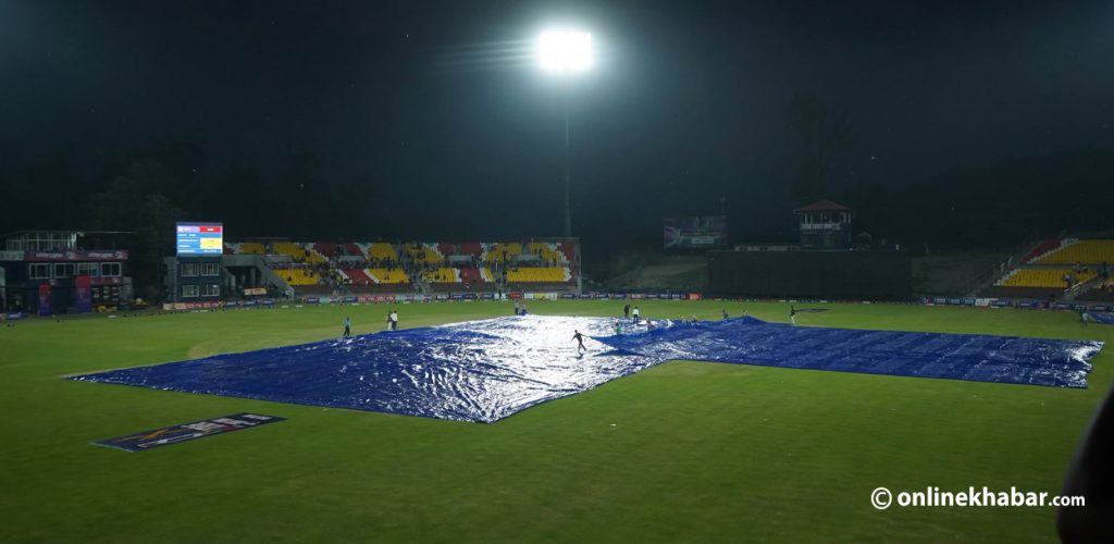 ७ वैशाख, काठमाडौं । वर्षाका कारण नेपाल र यूएईबीचको खेल रोकिएको छ । त्रिवि क्रिकेटमा १९औं ओभरको खेल चलिरहँदा वर्षा भएपछि खेल रोकिएको हो ।