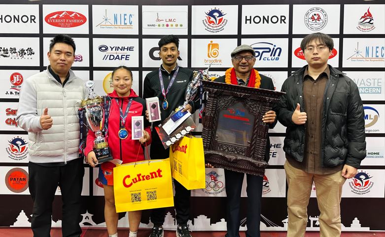 कामठाडौं – पाचौं अल नेपाल अन्तरवडा राष्ट्रिय टेबलटेनिस प्रतियोगिता ललितपुर महानगरपालिका—८ का रुविन महर्जन र शिवसताक्षी—८ की इभाना थापाले स्वर्ण पदक जितेका छन् । खुला सिङ्गल्सको पुरुषमा रुविन र महिलामा इभाना च्याम्पियन बनेका हुन् । लैनचौरस्थित राष्ट्रिय टेबलटेनिस प्रशिक्षण केन्द्रमा आज भएको पुरुषतर्फ फाइनलमा रुविनले ललितपुर—१६ का संयोग कपालीलाई ४–११, ११–८, ६–११, ११–५, १४–१२ र […]