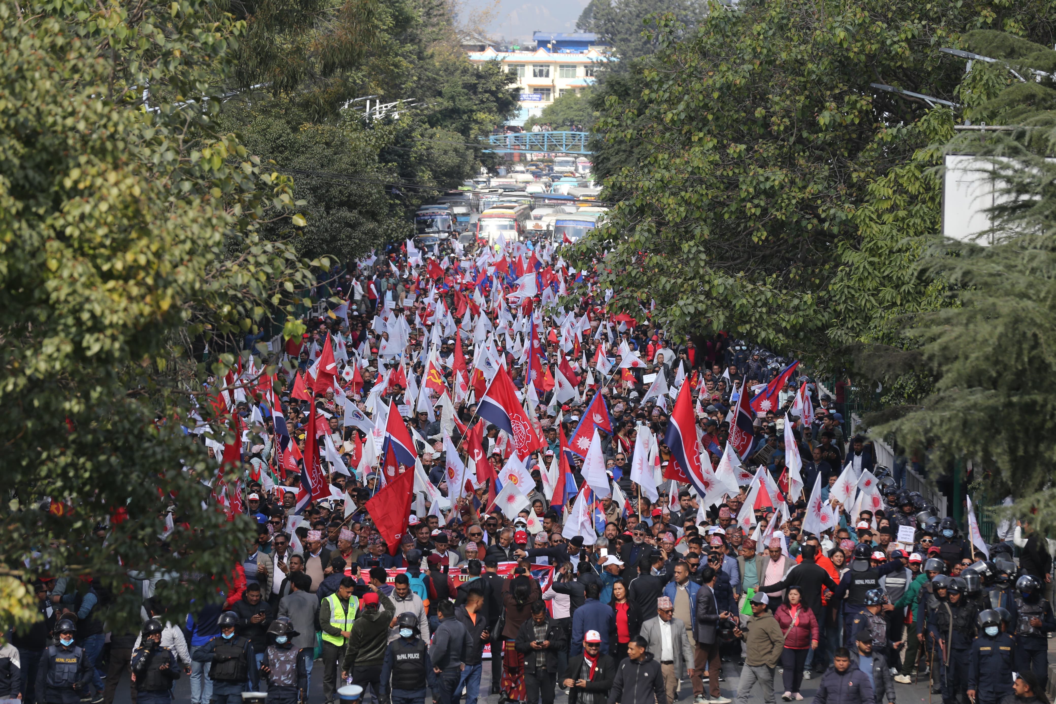 नेकपा एमालेले शनिबार काठमाडाैंमा शक्ति प्रदर्शन गरेको छ । एमाले बागमती प्रदेश कमिटीले प्रतिनिधिसभाको पुनर्स्थापना र गणतन्त्रको रक्षाको र प्रतिगमनविरुद्ध भन्दै प्रदर्शन गरेको हो ।