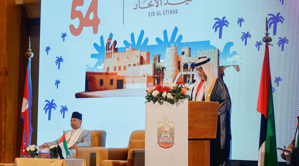 Kathmandu, Nov 30: Vice President Ram Sahay Prasad Yadav attended a special ceremony organized here on Saturday evening to mark the 54th National Day of the United Arab Emirates (UAE).Members of the Council of Ministers, heads of constitutional bodies, heads and representatives of diplomatic missions based in Kathmandu, Government of Nepal civil servants, industrialists, the UAE citizens in the country and media personnel attended the reception hosted by The ceremony, organized by the Ambassador of the United Arab Emirates (UAE) to Nepal, Abdulla Saeed Mubarak Jarwan Al Sham Si. ...