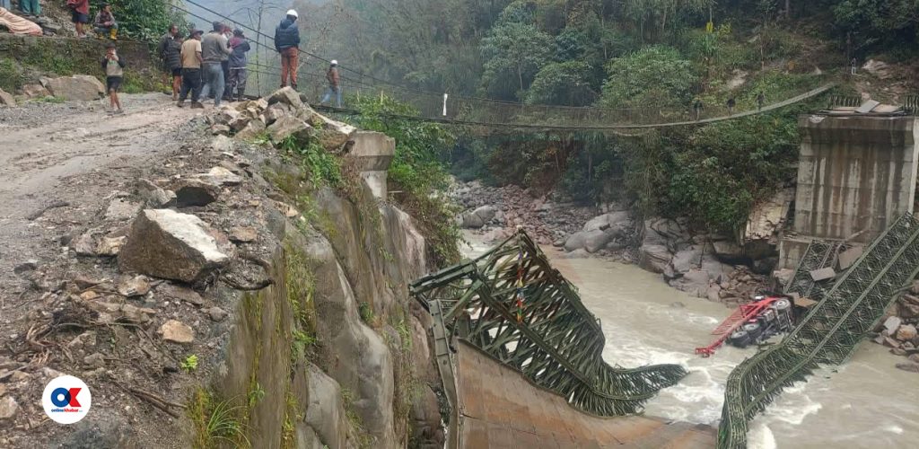 १६ फागुन, संखुवासभा । संखुवासभाको मकालु गाउँपालिका वडा नम्बर ५ र २ जोड्ने बेलिब्रिज भाँचिएको छ । मकालु–५ को नुम र वडा नम्बर–२ सेदुवा जोड्ने अरुण नदीमा निर्माण गरिएको बेलिब्रिज भाँचिएको हो ।