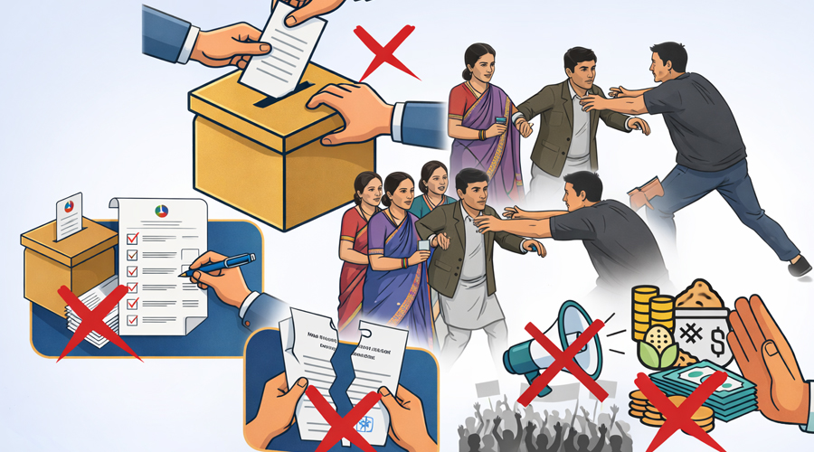 २० फागुन, काठमाडौं । निर्वाचनसँग सम्बन्धित ऐनअनुसार निर्वाचनको समयमा कानुनले बर्जित गरेका कार्य गरे दण्डनीय हुनेछ ।