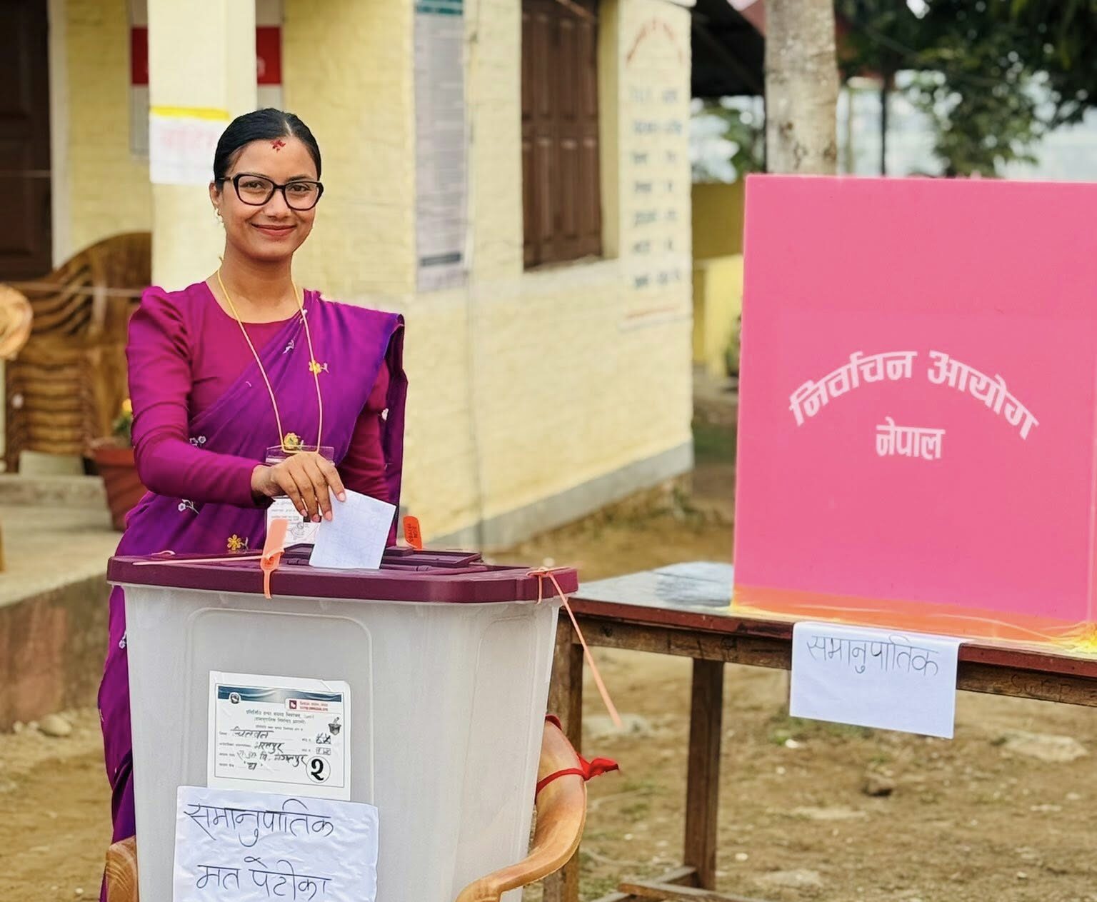 काठमाडौं– राष्ट्रिय स्वतन्त्र पार्टीकी उम्मेदवार सोबिता गौतमले चितवन क्षेत्र नं. ३ स्थित राष्ट्रिय आधारभूत विद्यालयबाट प्रतिनिधिसभा सदस्य निर्वाचनअन्तर्गत प्रत्यक्ष र समानुपातिक दुवै मतपत्रमा मतदान गरेकी छन् । मतदानपछि उनले सबैलाई स्वस्थ र शान्तिपूर्ण निर्वाचनको शुभकामना दिएकी छन् ।