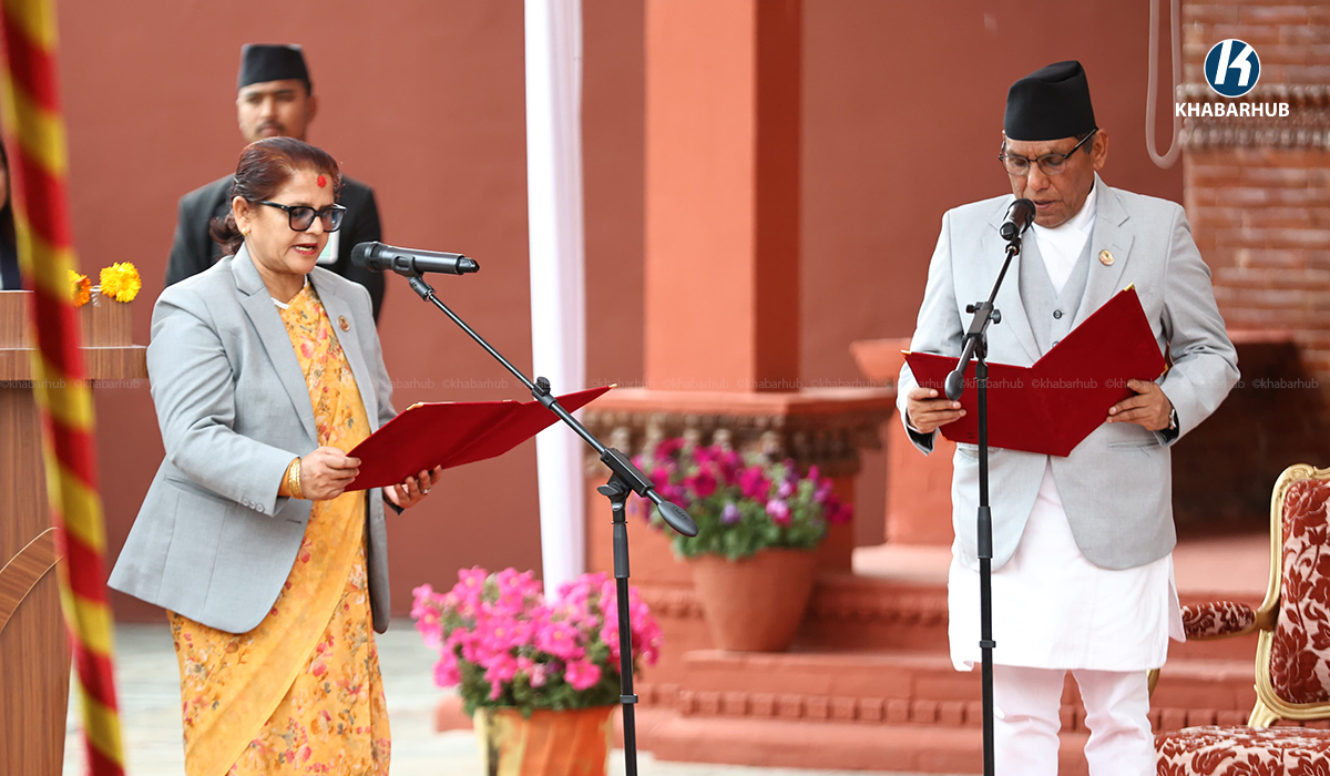 काठमाडौं- नवनिर्वाचित राष्ट्रियसभा उपाध्यक्ष लीला भण्डारीले पद तथा गोपनीयताको शपथ लिएकी छिन् । राष्ट्रपति रामचन्द्र पौडेलको उपस्थितिमा राष्ट्रिय सभाका अध्यक्ष नारायणप्रसाद दाहालसमक्ष राष्ट्रिय सभाका नवनिर्वाचित उपाध्यक्ष लीला भण्डारीले मंगलबार पद तथा गोपनीयताको शपथ लिएकी हुन् । राष्ट्रपति भवन शीतल निवासमा आयोजित कार्यक्रममा उपाध्यक्ष भण्डारीले पद तथा गोपनीयताको शपथ लिएकी हुन् । शपथ ग्रहण समारोहमा उपराष्ट्रपति […]