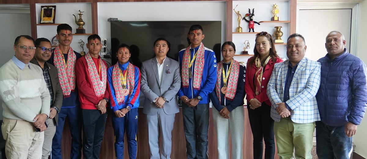 काठमाडौं– राष्ट्रिय खेलकुद परिषद् (राखेप) का सदस्य–सचिव टंकलाल घिसिङले चौथो दक्षिण एसियाली सिनियर एथलेटिक्स च्याम्पियनसिपका पदक विजेतालाई भेट गरी बधाइ दिएका छन् । भारतको झारखण्डमा कात्तिक ६ देखि ८ गतेसम्म भएको प्रतियोगितामा नेपालले २ रजत र ४ कांस्य पदक जितेको थियो । राजन रोकायले १० हजार मिटर दौड र सोमबहादुर कुमालले ८ सय मिटर दौडमा […]