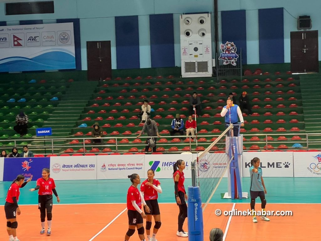 त्रिपुरेश्वरस्थित दशरथ रंगशालको कभर्डहलमा शुक्रबार भएको समूह ए को पहिलो …