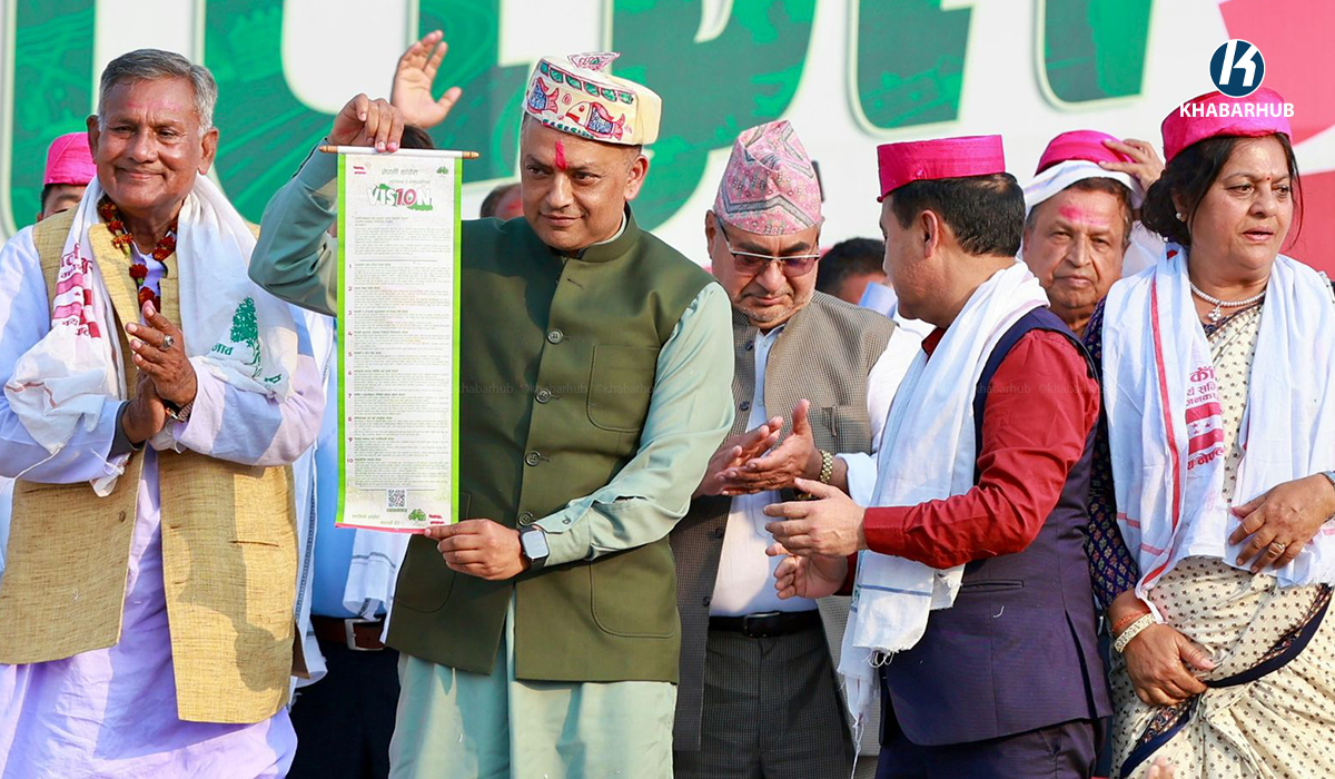 यस्तो छ नेपाली कांग्रेसको प्रतिज्ञा पत्रको भिजन १० नेपाली कांग्रेसले प्रतिनिधि सभाको निर्वाचनमा जनतामाझ प्रतिज्ञापत्र सार्वजनिक गरेको छ । ऐतिहासिक(सांस्कृतिक नगरी जनकपुरधामबाट बुधबार १० भिजनसहितको प्रतिज्ञापत्र सार्वजनिक गरिएको हो । सभापति गगनकुमार थापा, उपसभापति एवम् निर्वाचन परिचालन समितिका संयोजक विश्वप्रकाश शर्मा, उपसभापति पुष्पा भुसाल, मधेस प्रदेशका सभापतिसहित नेताहरूको उपस्थितिमा प्रतिज्ञापत्र सार्वजनिक गरिएको हो । प्रतिज्ञापत्र […]