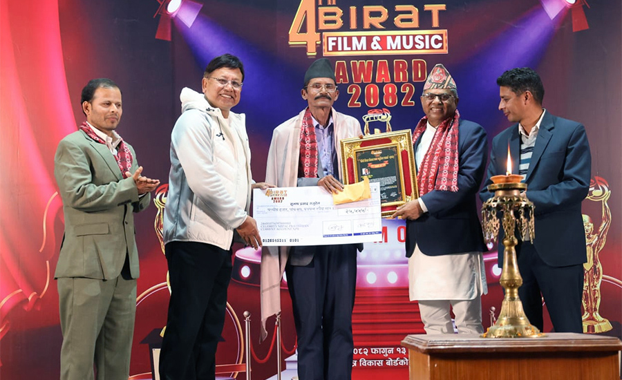 काठमाडौँ । ‘विराट फिल्म एन्ड म्युजिक अवार्ड’ को चौथो संस्करण सम्पन्न भएको छ । चलचित्र विकास बोर्डको हलमा आयोजित समारोहमा संस्कृति, पर्यटन तथा नागरिक उड्डयनमन्त्री अनिलकुमार सिन्हा प्रमुख अतिथिको रुपमा सहभागी थिए ।
