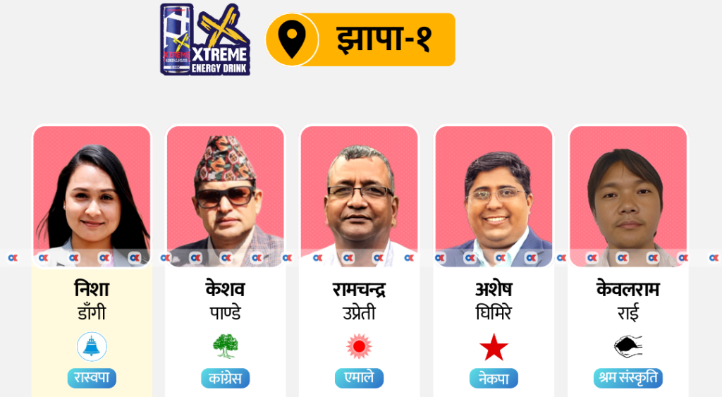 २२ फागुन, झापा । झापा क्षेत्र नं १ मा राष्ट्रिय स्वतन्त्र पार्टी (रास्वपा) की उम्मेदवार निशा डाँगीले अग्रता लिएकी छन् । उनले १ हजार ५९१ मत सहित अग्रता लिएकी हुन् ।