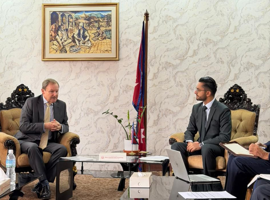 २ वैशाख, काठमाडौं । शिक्षा, विज्ञान तथा प्रविधिमन्त्री सस्मित पोखरेलसँग नेपालका लागि संयुक्त अधिराज्य (बेलायत) का राजदूत रब फेनले बुधबार शिष्टाचार भेट गरेका छन् ।