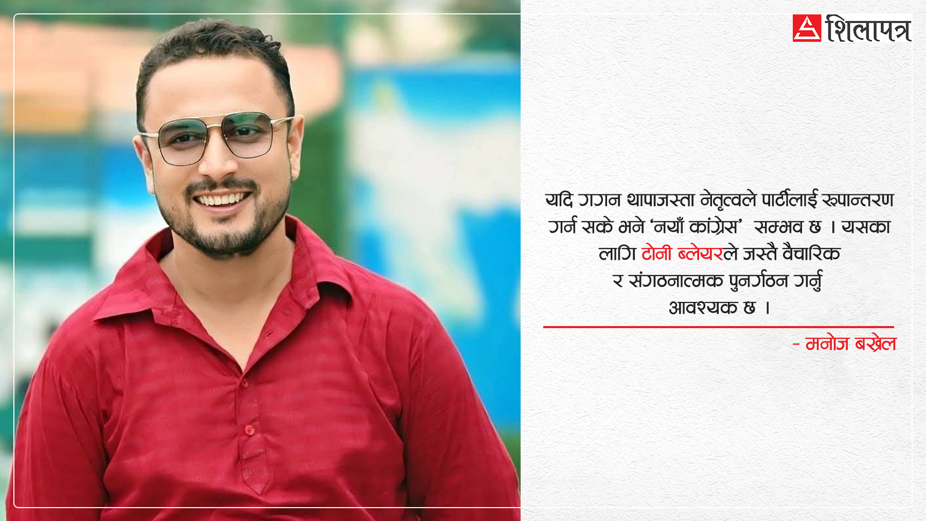 यदि गगन थापाजस्ता नेतृत्वले पार्टीलाई रूपान्तरण गर्न सके भने 'नयाँ कांग्रेस' सम्भव छ । यसका लागि टोनी ब्लेयरले जस्तै वैचारिक र संगठनात्मक पुनर्गठन गर्नु आवश्यक छ ।