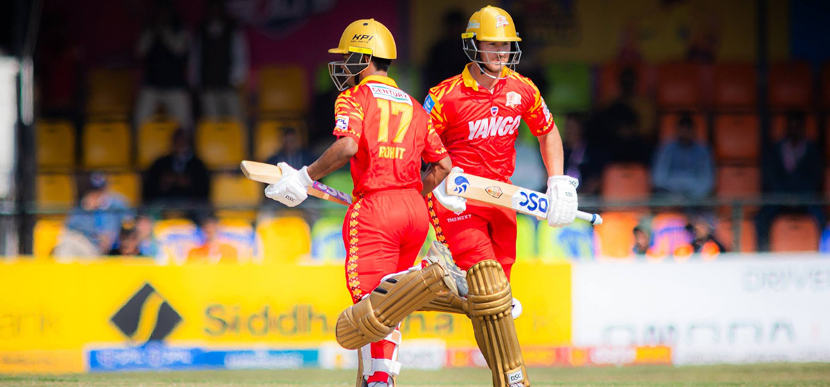 Kathmandu, Nov 22: Lumbini Lions have scored 156 runs in 20 overs at the loss of 8 wickets in the match underway as part of the Nepal Premier League (NPL) 2025.Put into bat first, Lumbini posted a challenging total, thanks to the top scorer Captain Rohit Paudel, who scored 49 runs in 43 balls. A late flurry of runs by JJ Smit and Ruben Trumpelmann, who scored 23 and 29 in the equal 14 balls, pushed Lumbini towards the total that the bowlers would try to defend. D'Arcy Shot also scored 19 runs.For the bowling side, Nandan Yadav took 2...