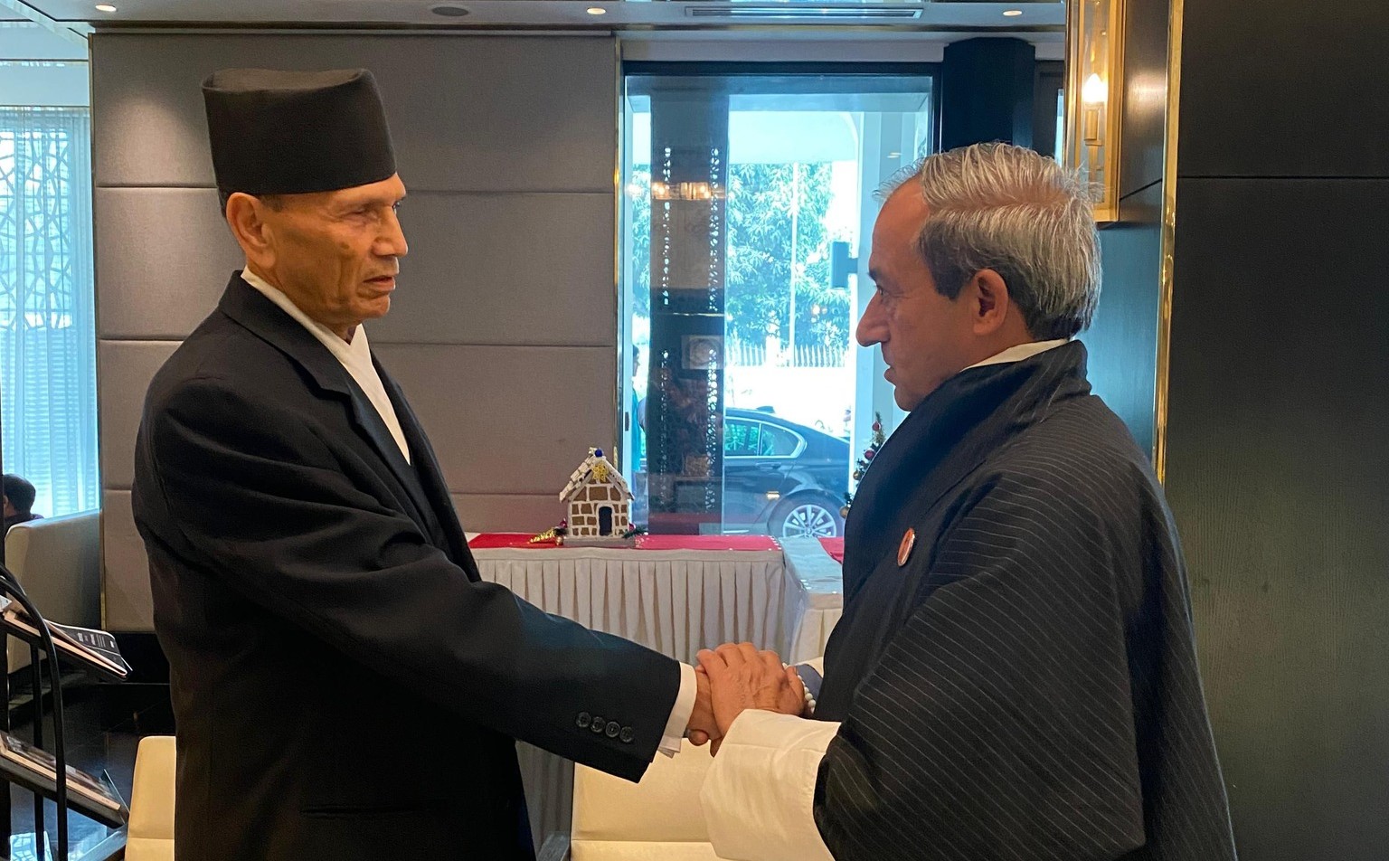 नेपालका नवनियुक्त परराष्ट्रमन्त्री बाला नन्द शर्मा र भुटानका विदेशमन्त्रीको बंगलादेशको राजधानी ढाकामा भेट भएको छ । भुटानका विदेशमन्त्री डीएन ढुङ्गेलले भेटको पुष्टि गरेका छन् ।