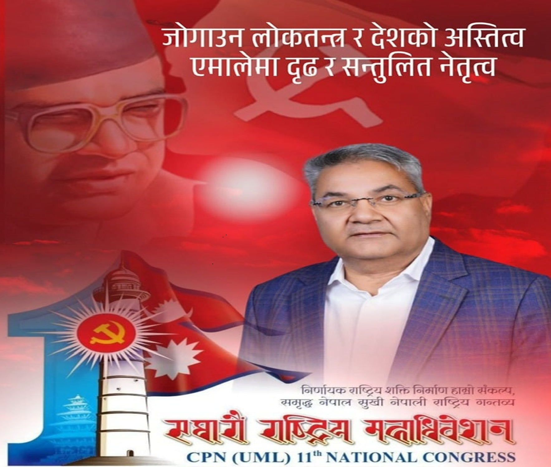काठमाडौं– नेकपा एमालेका स्थायी कमिटी सदस्य गोकुल बाँस्कोटाले आवरणमा मदन भण्डारी रहेको पोस्टर सार्वजनिक गरेका छन् । एमालेको एघारौँ महाधिवेशनमा ईश्वर पक्ष प्यानलमा रहेका बाँस्कोटाले मदन भण्डारीको तस्बिरसहितको पोस्टर सार्वजनिक गरेका हुन् । उनले ‘जोगाउन लोकतन्त्र र देशको अस्तित्व एमालेमा दृढ र सन्तुलित नेतृत्व भन्ने’ नारासहितको पोस्टर सार्वजनिक गरे हुन् । अरूले वर्तमान अध्यक्ष केपी […]