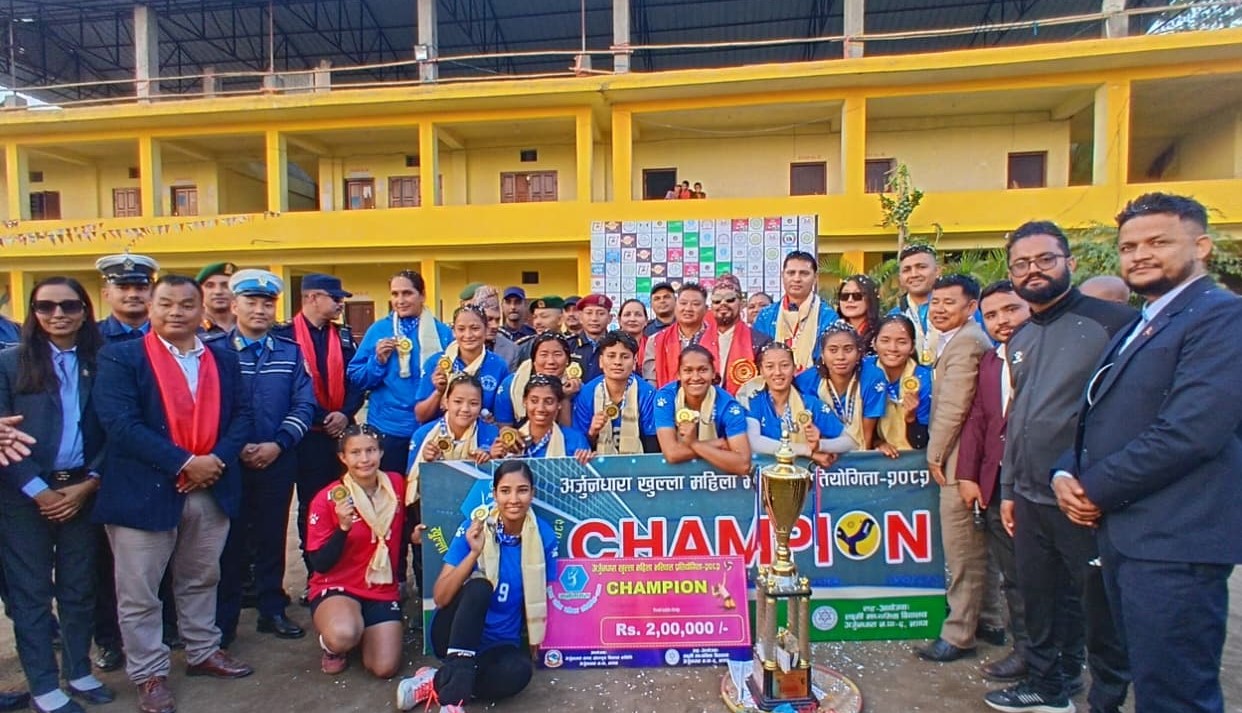 झापा – अर्जुनधारा खुला महिला भलिबल प्रतियोगिताको आज भएको फाइनल प्रतिस्पर्धामा पुलिस क्लबले उपाधि जितेको छ । विभागीय टोली सशस्त्र प्रहरी बलको एपिएफ क्लबलाई हराउँदै पुलिसले उपाधि चुमेको हो । प्रतिस्पर्धात्मक खेलमा पुलिसले एपिएफलाई ३–१ को सेटमा पराजित गरेको थियो । उपाधिसँगै पुलिसले नगद रु दुई लाख, ट्रफी, मेडल र प्रमाणपत्र प्राप्त गरेको छ । […]