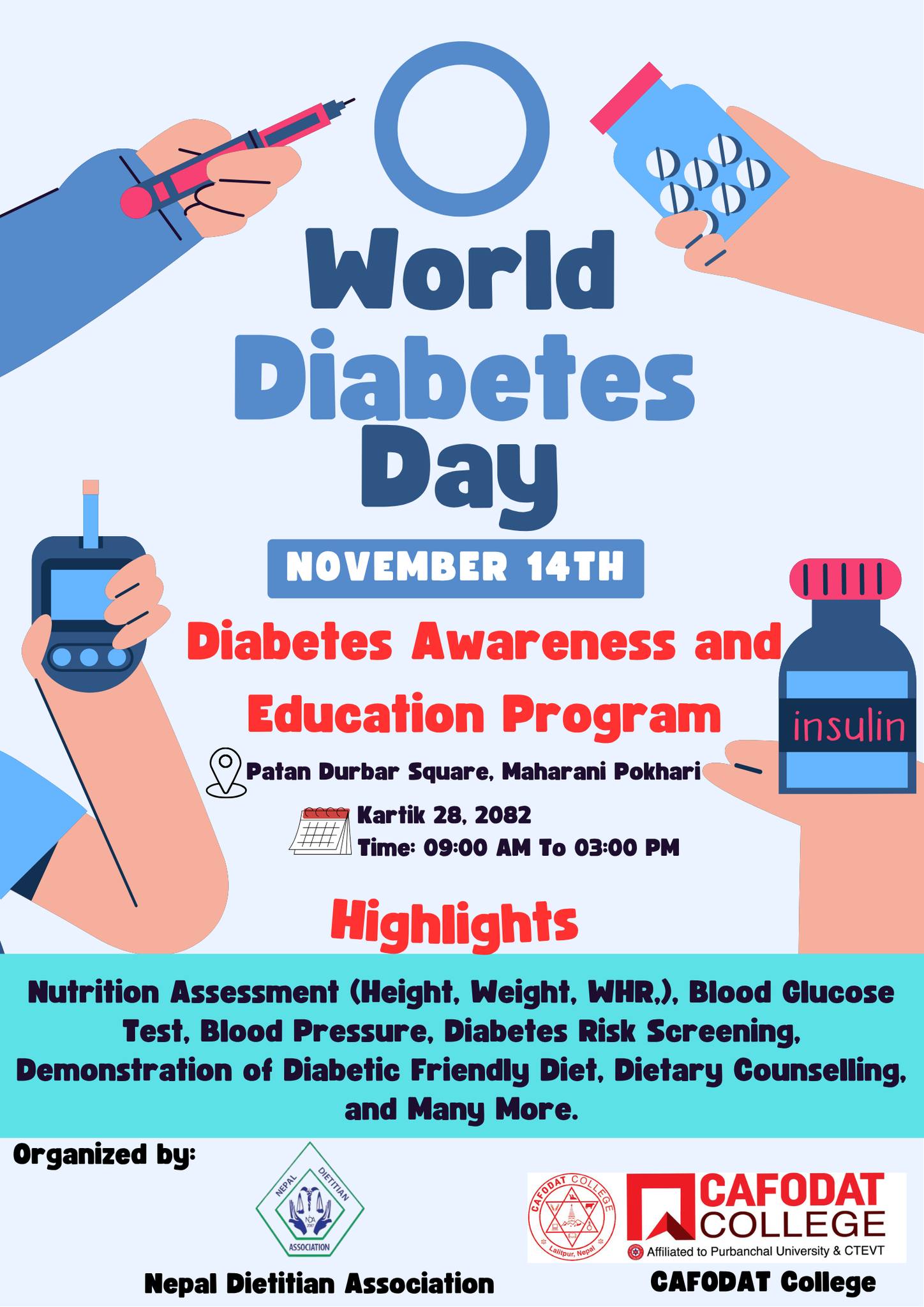 उक्त कार्यक्रममा शरीरमा चिनीको मात्राको निशुल्क परीक्षण, जोखिमको स्क्रीनिङ्ग र उच्च रक्तचापको परीक्षण गरिनेछ। व्यक्तिको उमेर अनुसारको उचाई र तौल पनि परीक्षण गरिने एशोसिएसनले जनाएको छ।