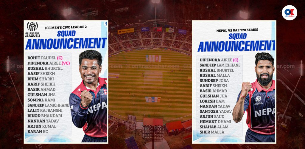 ४ बैशाख, काठमाडौं । नेपाल क्रिकेट संघ (क्यान)ले पहिलोपटक फरकफरक कप्तानसहित राष्ट्रिय टोलीको घोषणा गरेको छ । क्यानले आगामी सोमबार र मंगलबार हुने युएईविरुद्धको टी-२० सिरिजका लागि दीपेन्द्रसिंह ऐरीको कप्तानमा १५ सदस्यीय टोलीको घोषणा गरेको …
