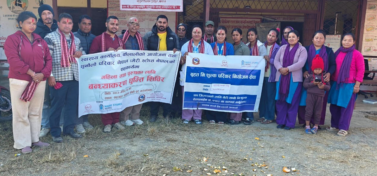 काठमाडौँ। पायक पर्ने स्थानमा सञ्चालन हुने ‘एकीकृत परिवार योजना शिविर’मा परिवार योजनाको स्थायी सेवा लिनेमा महिलाका तुलनामा पुरुष न्यून छन्। जिल्ला जनस्वास्थ्य ÷स्वास्थ्य कार्यालयले सम्बन्धित पालिका तहसँग समन्वय गर्दै सुनौलो परिवार नेपालको प्राविधिक सहयोगमा सञ्चालन गर्दै आएका त्यस्ता शिविरमा स्थायी ‘मिनील्याप’ सेवा लिने महिलाका तुलनामा ‘भ्यासेक्टोमी’ सेवा लिन पुरुषले कम रुचि देखाएका हुन्। गत मङ्सिर […]