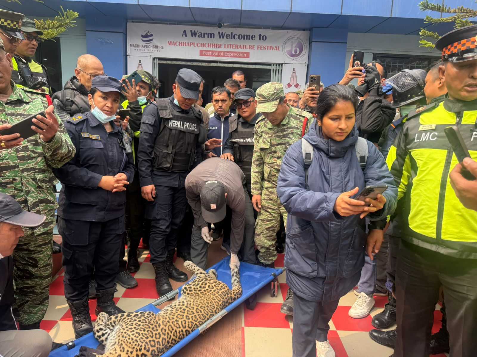 Lalitpur. A technical team from the Central Zoo in Jawalakhel, Lalitpur, rescued a leopard this morning from the store of Machhapuchhre School in Kusunti Height, Lalitpur.The team rescued the leopard by using a 'dart' with the joint support of the Satdobato Police, the District Forest Office Lalitpur, and the Lalitpur Metropolitan Police team. Central Zoo Chief Satyanarayan Sah informed that the leopard, estimated to be 10 years old and weighing 60 kg, was kept at the zoo's wildlife hospital for treatment after the rescue. He stated that the leopard would be released back into its natural habitat after treatment.The zoo...